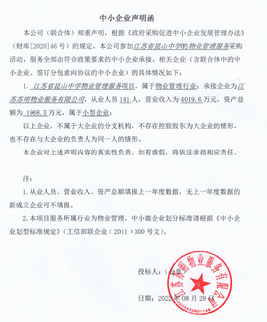 项目名称:江苏省昆山中学关于物业管理服务项目