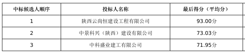 | 陕西云尚恒建设工程有限公司 | 陕西省西安市绿地创海大厦 | 综合评分法 | 否 | 1,079,600.33元 | 93.00 | |||||||||||||