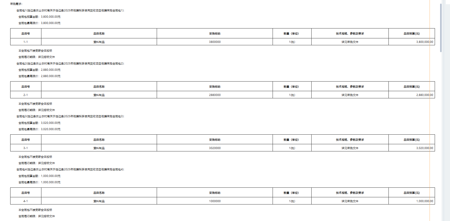 合同履行期限:详见招标文件合同包4(定边县农业农村局关于定边县2025年地膜科学使用回收项目地膜采购合同包4):